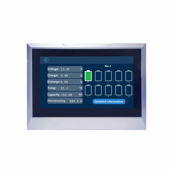 No need for additional hardware—our display seamlessly integrates with up to 10 battery units using a proprietary communication protocol. View real-time, comprehensive battery data at a glance, including voltage, capacity, and performance metrics.